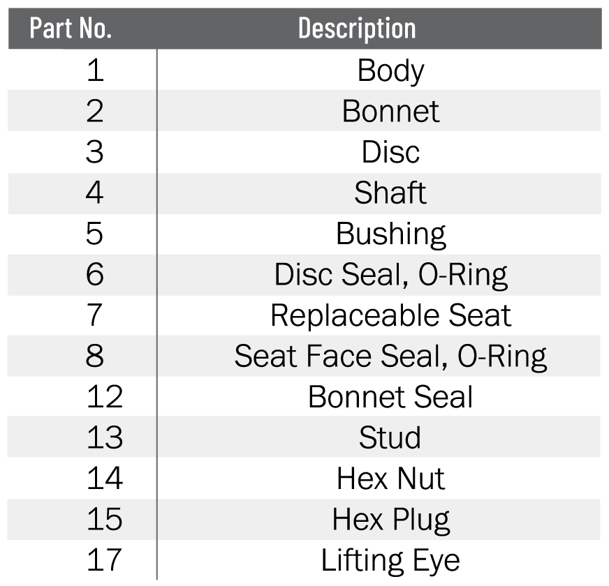 Std. trim includes 316 stainless steel disc, shaft & bushings Unique opt. 316 stainless steel removable seat available Installs in vertical “upflow” applications with no modification & suitable for pigging